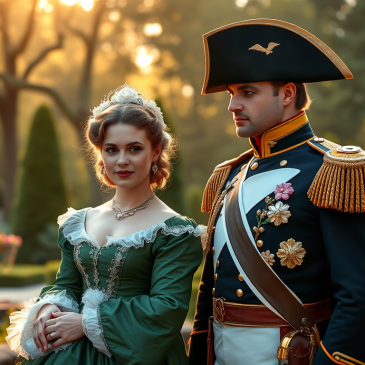So stellt sich die KI Königin Luise mit Napoleon in Dennenlohe vor… 🙂 … Mehr Königin Luises Besuch auf Schloss Dennenlohe – exakt 222 Jahre her….