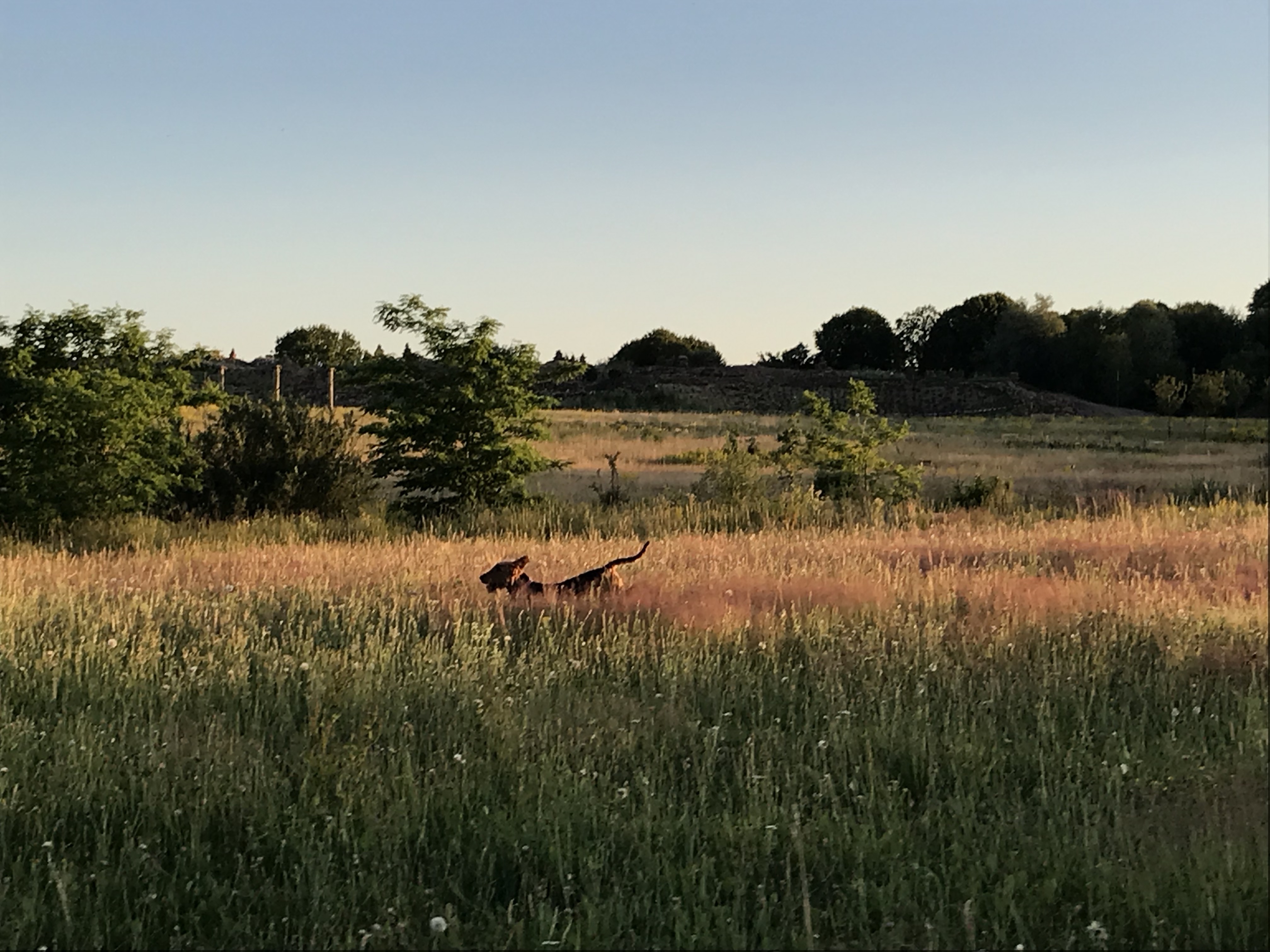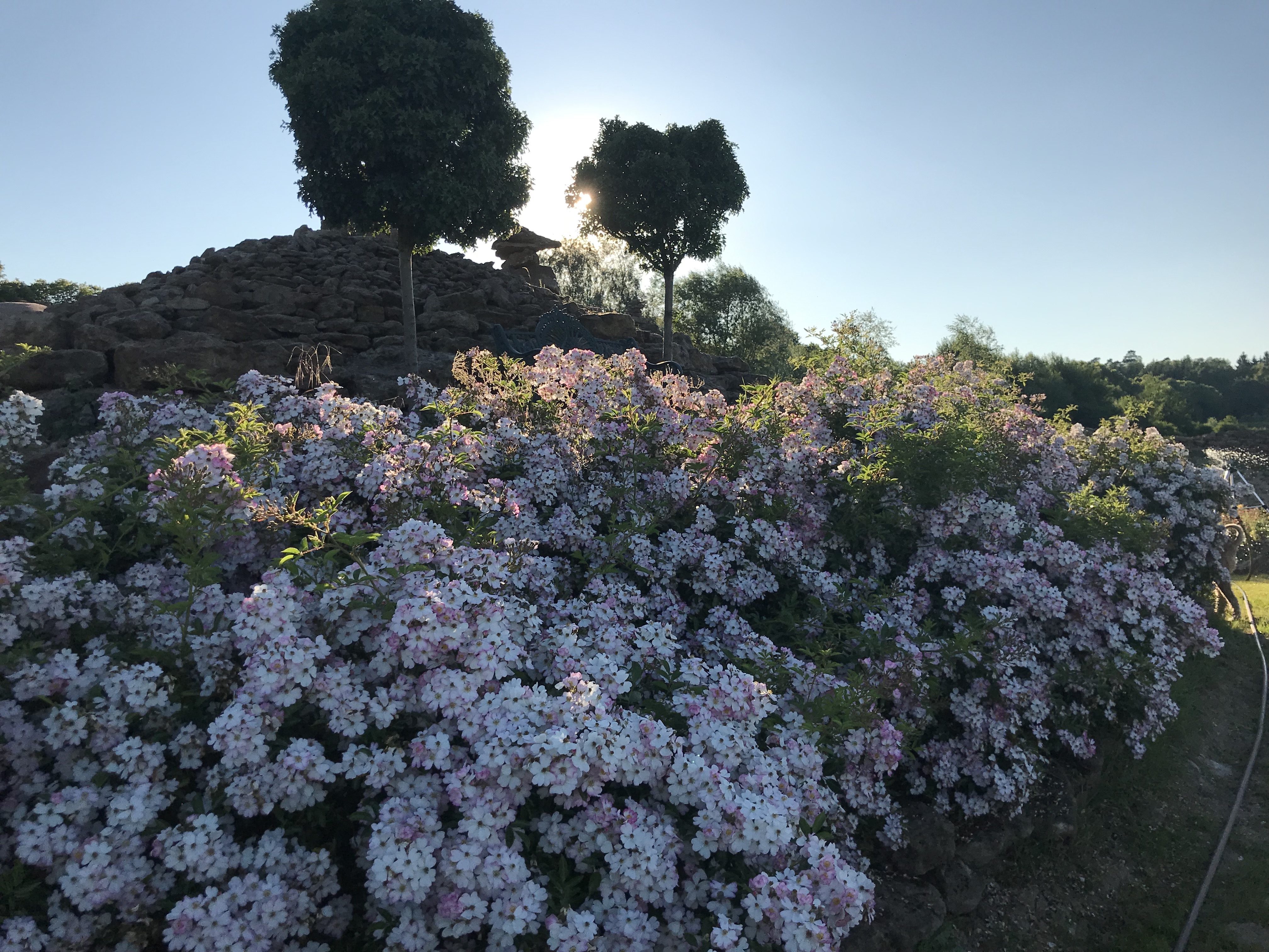 Er war nur schneller wieder fit als ich – heute durfte er das erste Mal wieder neben meinem Rasenmäher herlaufen… wir waren beide glücklich! Es ist nämlich gerade wunderschön im Park – Rosen, Taglilien, Wiesen – alles blüht!