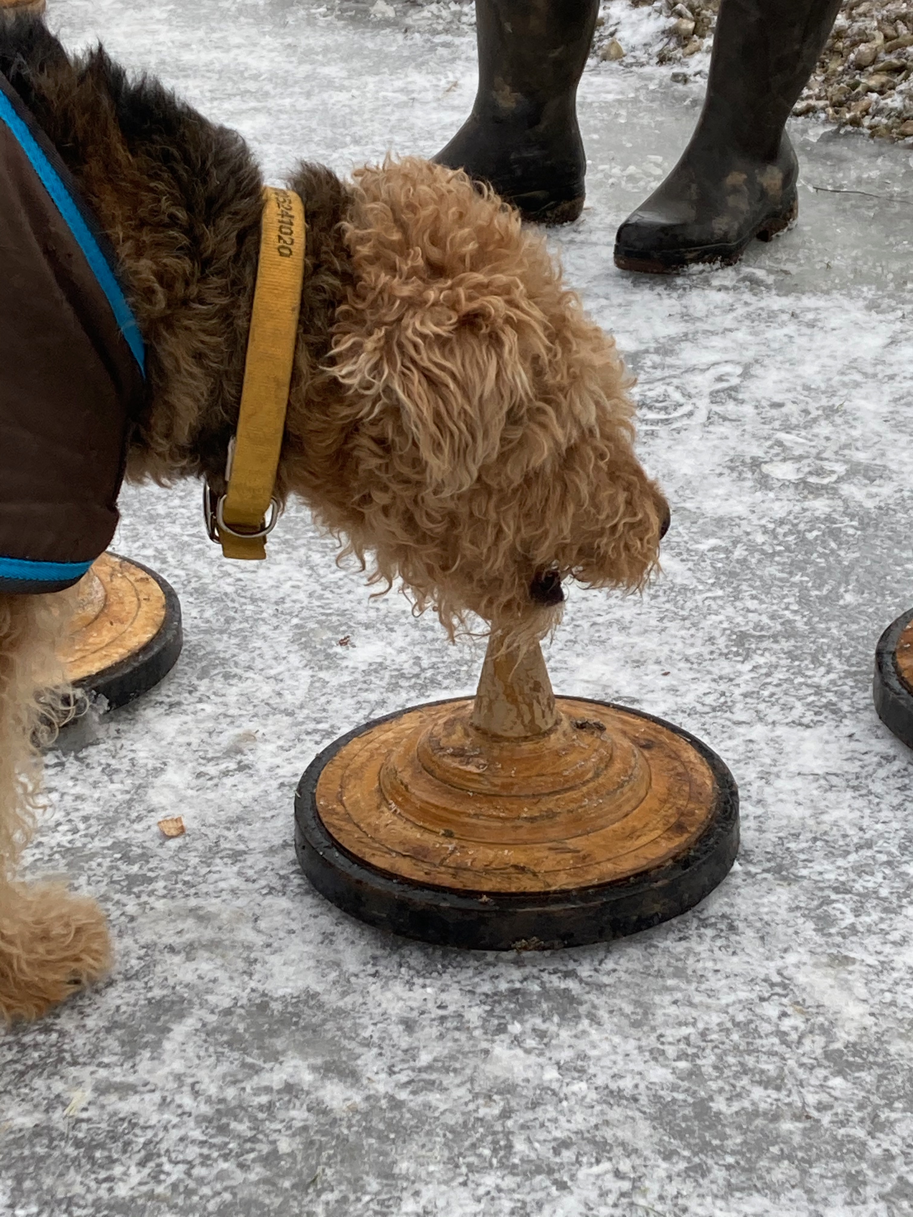 Mit Besen und Giesskannen bewaffnet, damit das Eis glatt wurde, erinnerte sich Paule sofort daran, was man mit den Stöcken tun kann – reinbeißen! Und die Kinder von Paule – Enys, Lotte und Yodine waren baff überrascht von der spiegelglatten Oberfläche – immerhin ihr erstes Eis! Sie kugelten nur so hin und her. Und Bailey hätte fast alle Zähne verloren, weil er dauernd hinter dem Schwingenden stand und sich heimlich ranmogeln wollte. Nur Line fand es irgendwie albern immer den Stöcken nachzurennen und hat sich gleich den Puck geschnappt. So hatte jeder seinen Spaß!