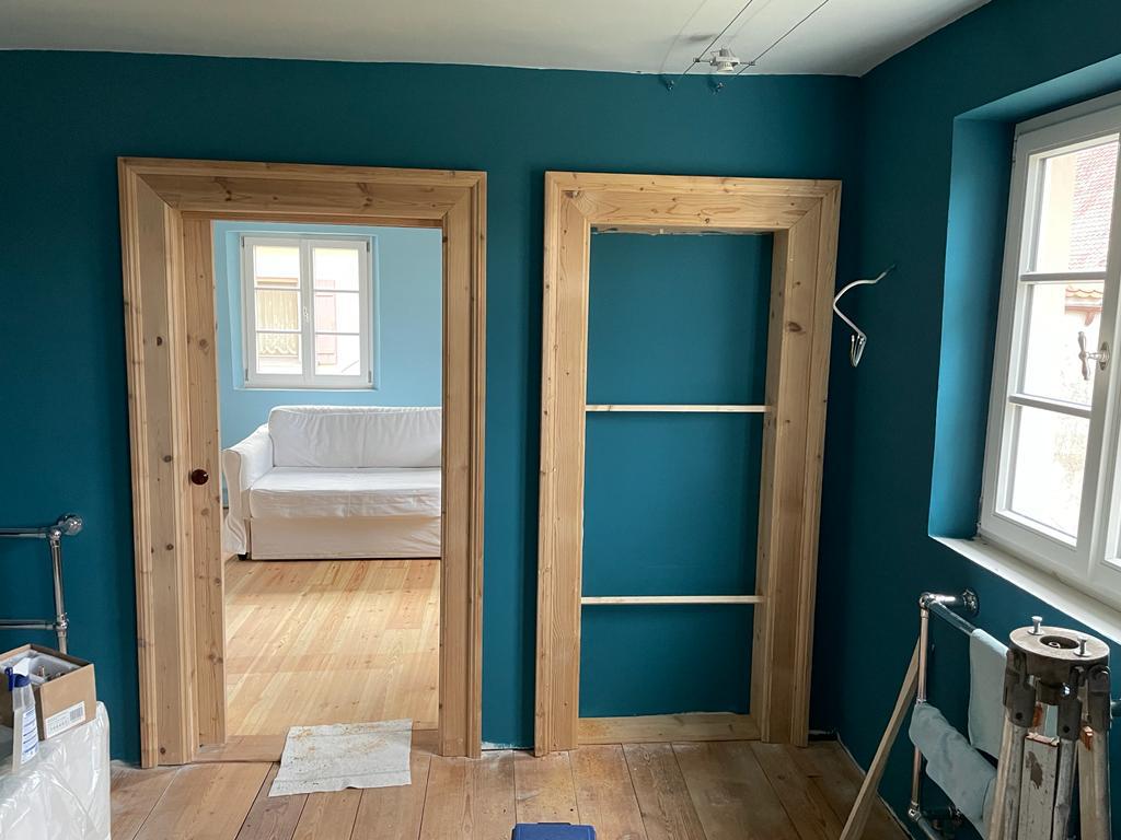 Nebenbei geht es ja mit den Renovierungen fürs Forsthaus in Dennenlohe weiter voran, das wir seit fast einem Jahr renovieren und ab Ostern endlich über Airbnb vermieten möchte, jeden zweiten Morgen rufen mich die – Gott sei Dank, super selbstständig arbeitenden Handwerker an – meistens zum Arbeitsbeginn um 7 Uhr, was in Cornwall dann 6 Uhr früh ist, schicken neue Bilder und sprechen alles mit mir durch. Ein toller Service – nur eben sehr früh am Tag. Aber immerhin es geht voran…zwei Schlafzimmer, ein wunderbares Wohnzimmer mit einem alten Kachelofen und einem offenen Ess/Küchenbereich – es wird ganz fabelhaft. Der grüne Baron muss sich nur noch um die Terrasse und den Garten kümmern…ich suche in dieser Zeit schon mal Möbel in Dennenlohe zusammen!