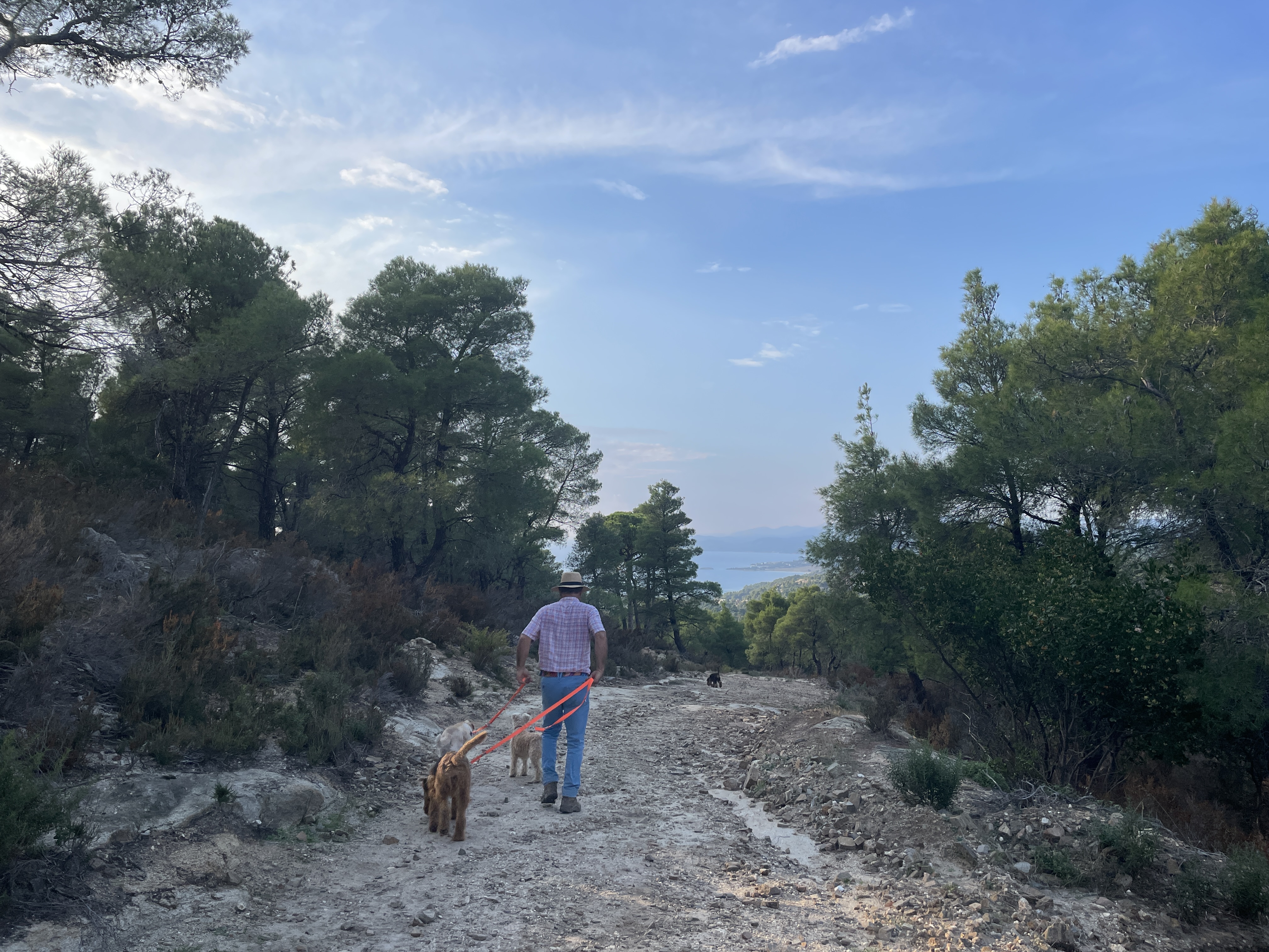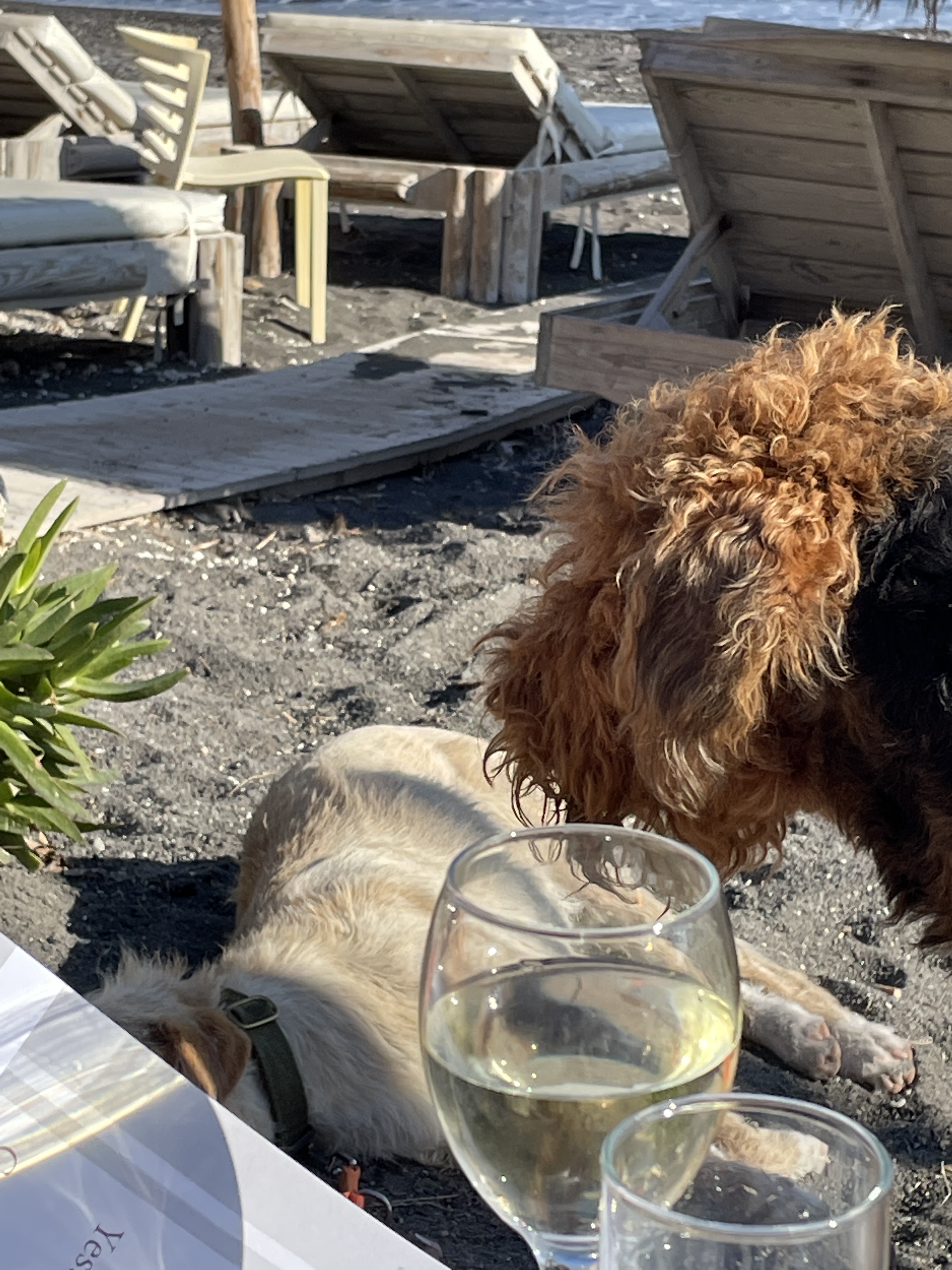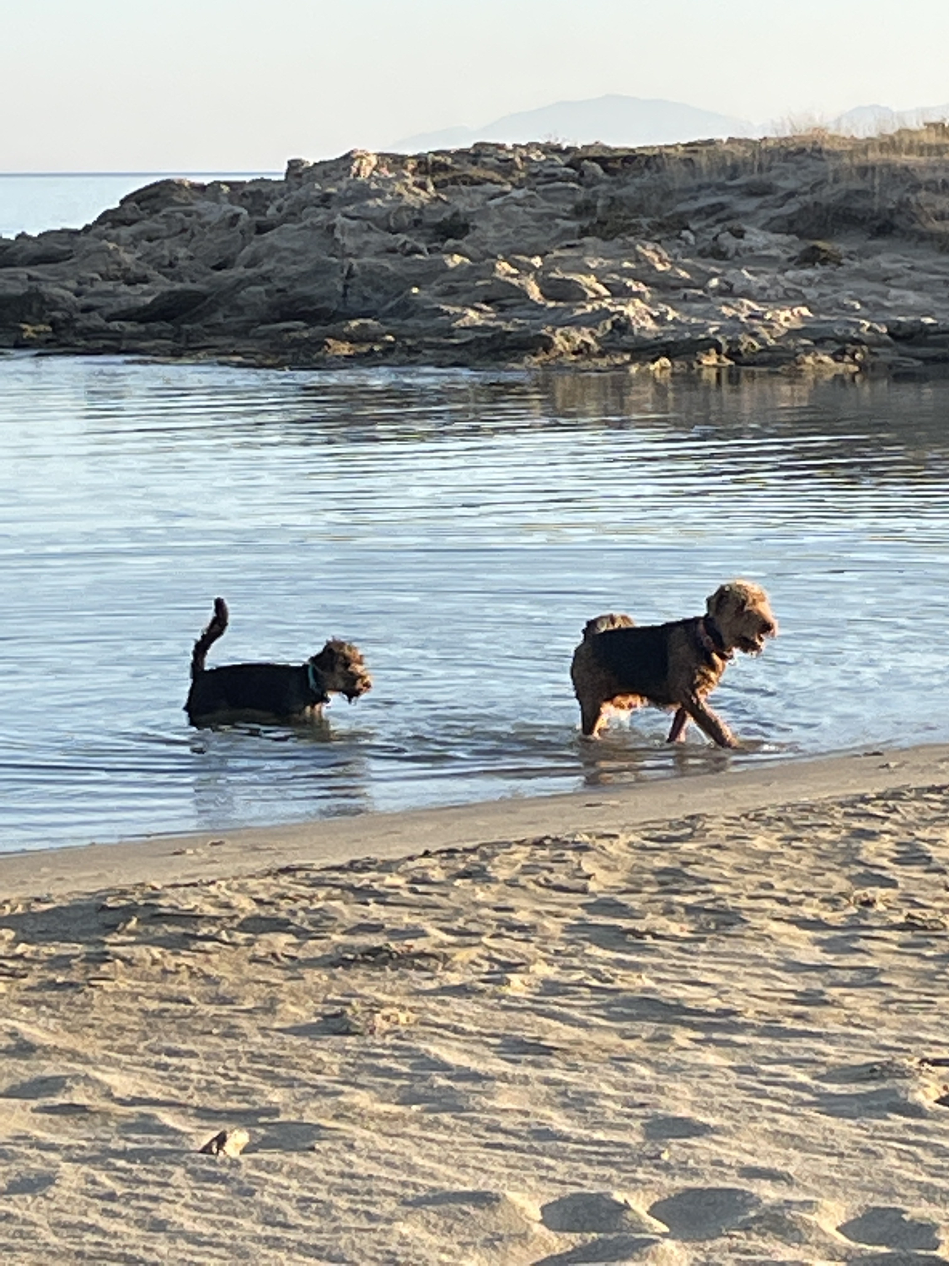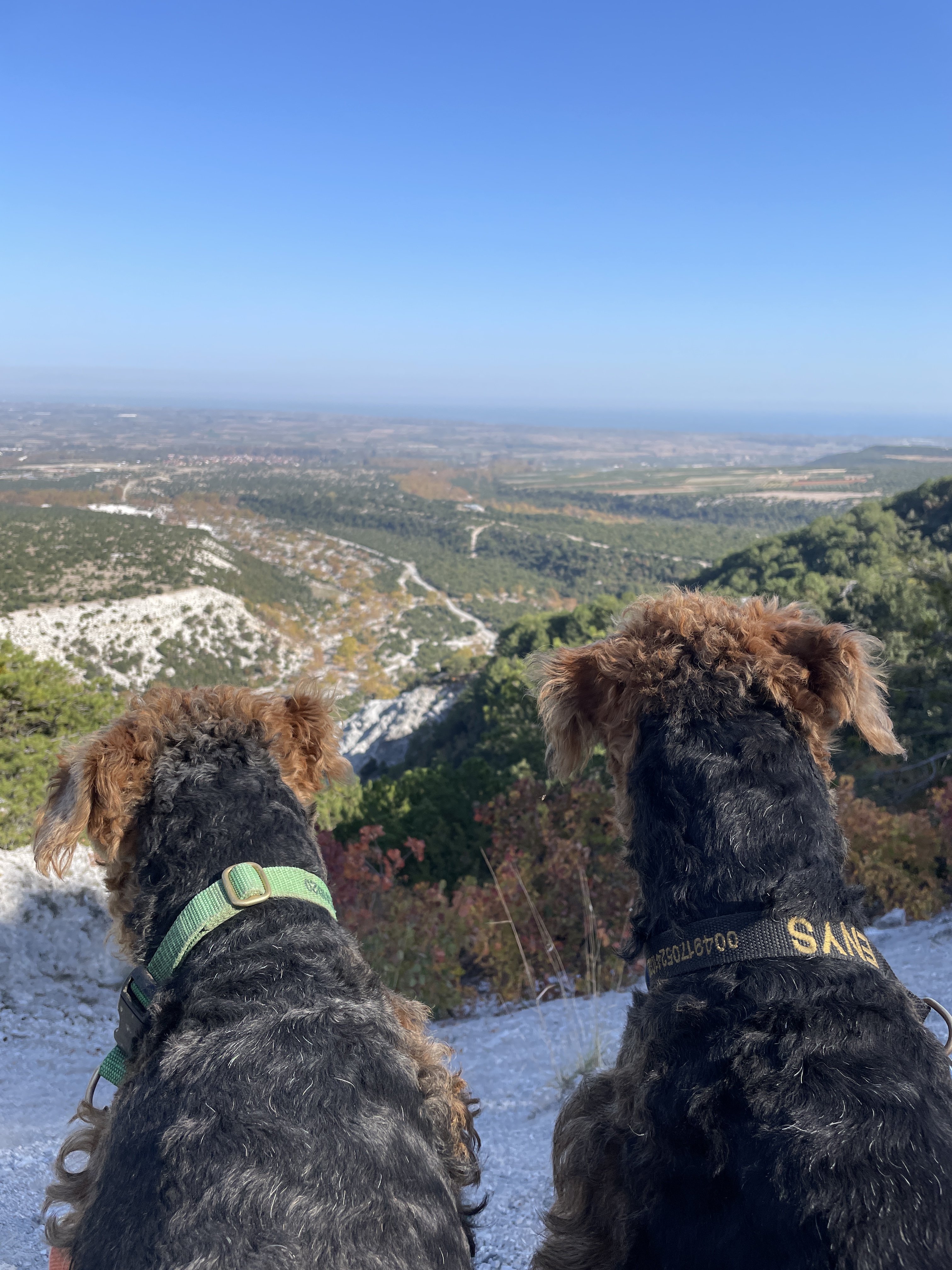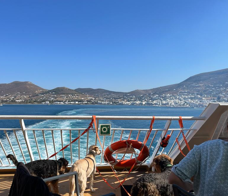 Auch die Restaurantauswahl ist mit Hunden anders – sitzen 20 Katzen um die Tische, müssen die Hunde leider im Auto warten und dürfen nicht mit raus. Terrier und Katzen sind nämlich ein ganz eigenes Thema. Sind es weniger Katzen, klappt es gut und die Hunde sind aufmerksam dabei und schlafen nachher ganz wunderbar, weil das „Rumschauen“ so anstrengend war. In Griechenland sind die Menschen sehr relaxed mit Hunden, es spielt sich ja auch fast alles draussen im Freien ab und Straßenhunde, die öfters mal vorbeikommen gehen immer jedem Streit aus dem Weg. Da gab es noch nie Probleme!