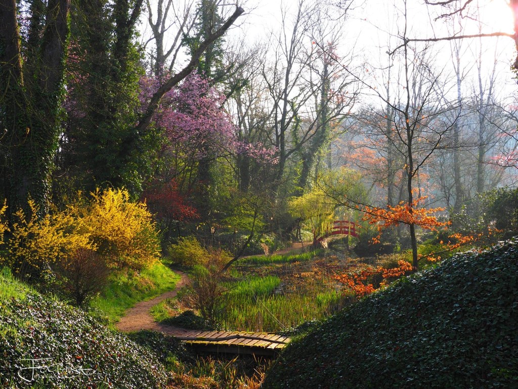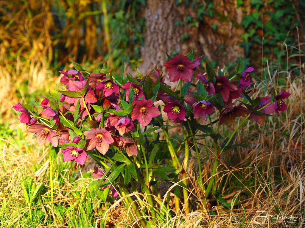 Gott sei Dank blüht jetzt alles – und man darf einfach nicht auf den Boden schauen – sondern muß sich mit den Augen 20 cm über der Kiesschicht fixieren – dann sieht man wunderschöne Kombinationen von Helleboren (Christrosen), tausenden Narzissen, den ersten Tulpen und eine Ebene höher auf einem Meter – Kirschen, Weißdorn und ab heute die ersten Buchenblätter, die sonst erst am 1. Mai erscheinen.