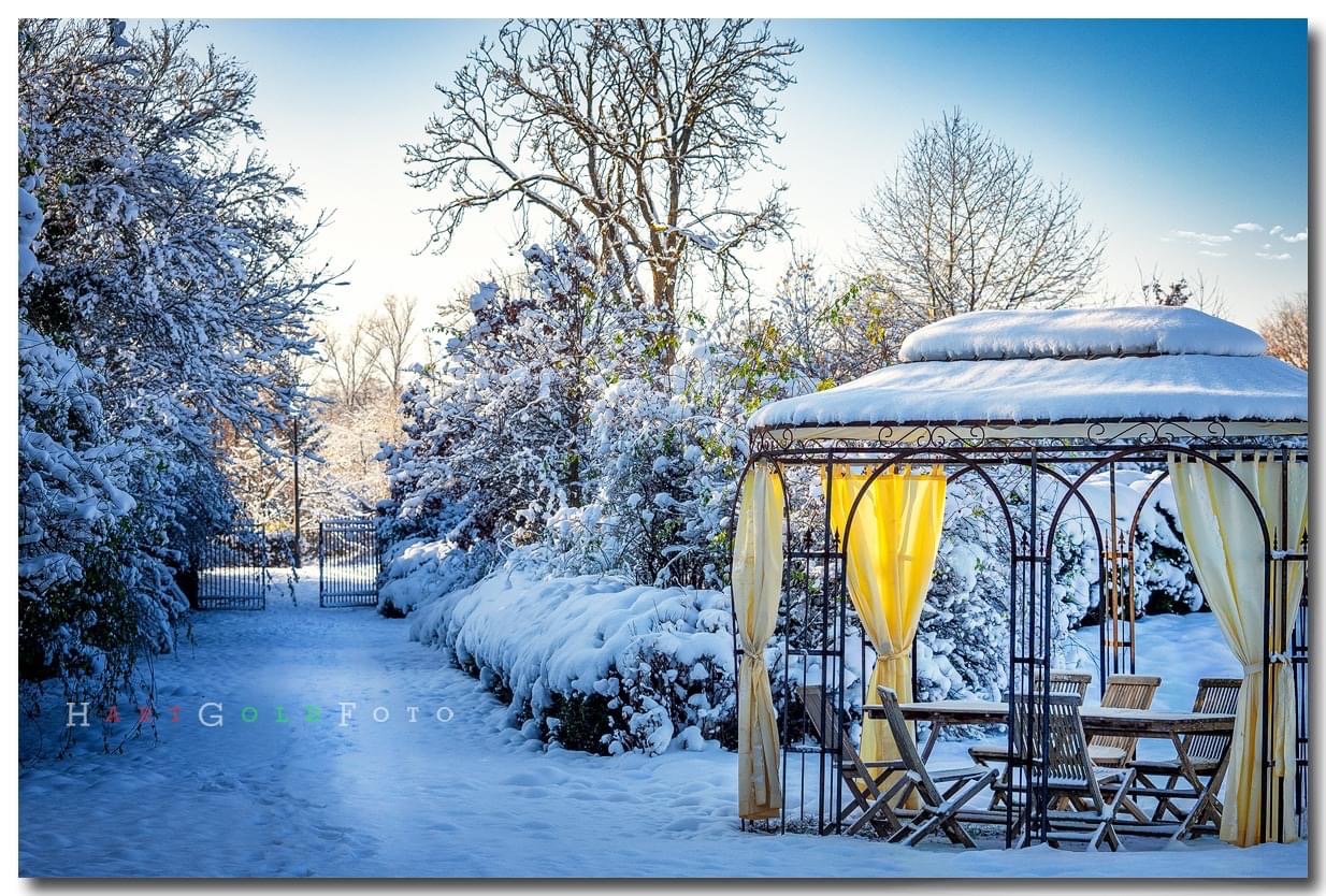 Wie schön, dieses Jahr war es Anfang Dezember nicht nur kalt, so wie letztes Jahr, als uns die Heizungsrohre in zwei Nebengebäuden geplatzt sind, sondern es war auch noch wunderschönes Wetter dazu. Das haben viele unserer phänomenalen Gartenphotografen genutzt und sind schnell nach Dennenlohe in den Park geflitzt – und es kamen sagenhafte Photos dabei heraus, die ich Ihnen nicht vorenthalten will. Schnee ist nämlich in Dennenlohe relativ selten…