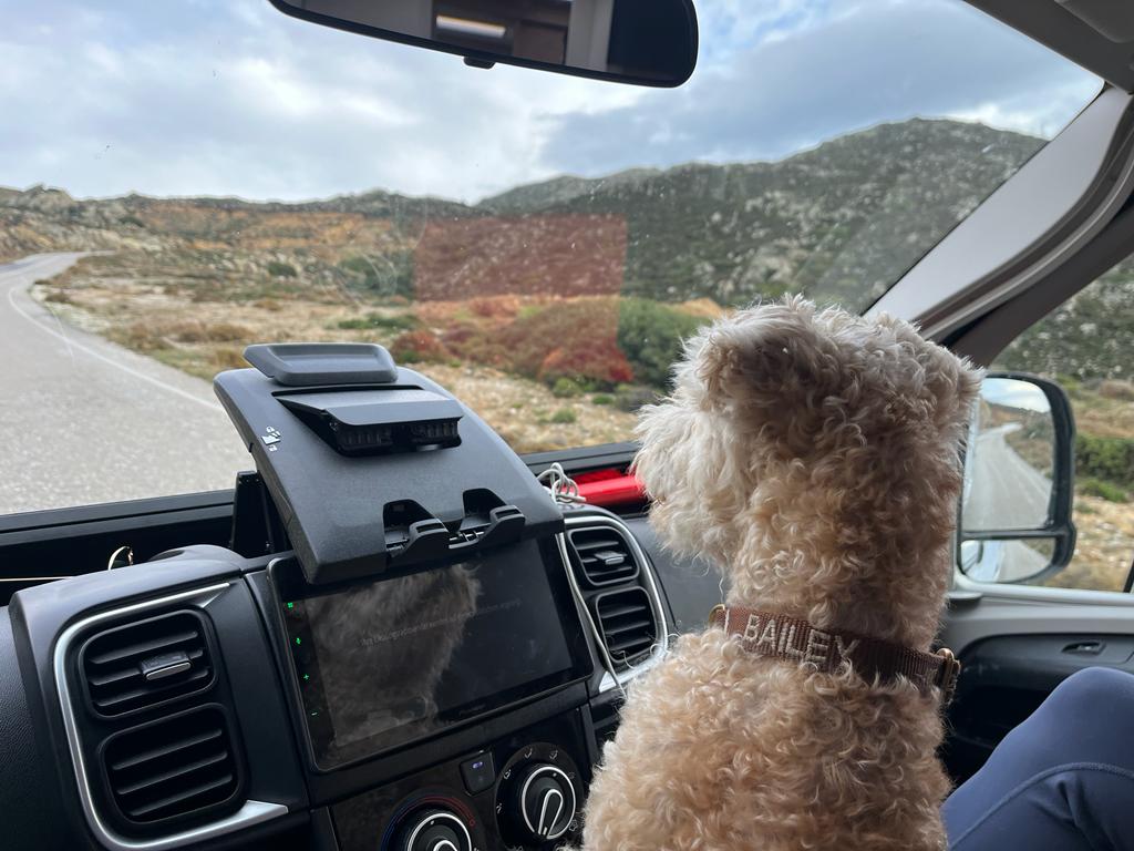 Bailey liebte das Meer, die vielen Strände, an denen wir waren und war mit seinen zehneinhalb Jahren in vielen Ländern mit uns unterwegs: Dänemark, Schweden, Norwegen, Belgien, Frankreich, England, Schottland, Wales, Irland, Portugal, Spanien, Italien, Österreich, Kroatien, USA, Albanien, Montenegro, San Marino, Bulgarien und natürlich sein geliebtes Griechenland. Überall saß er vorne und schaute interessiert und oberwichtig in die Welt.