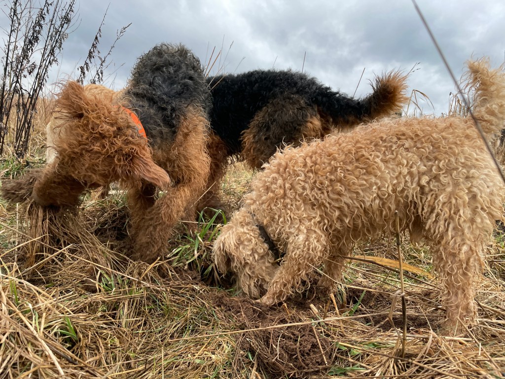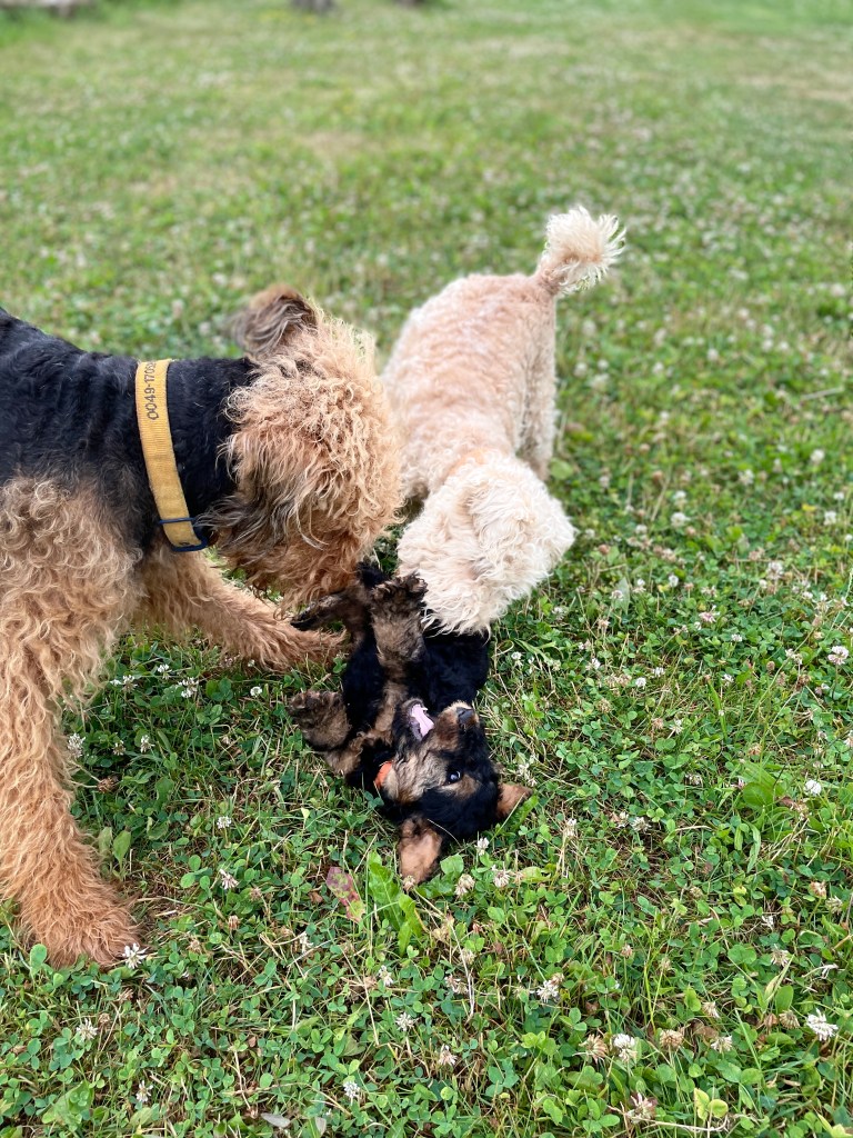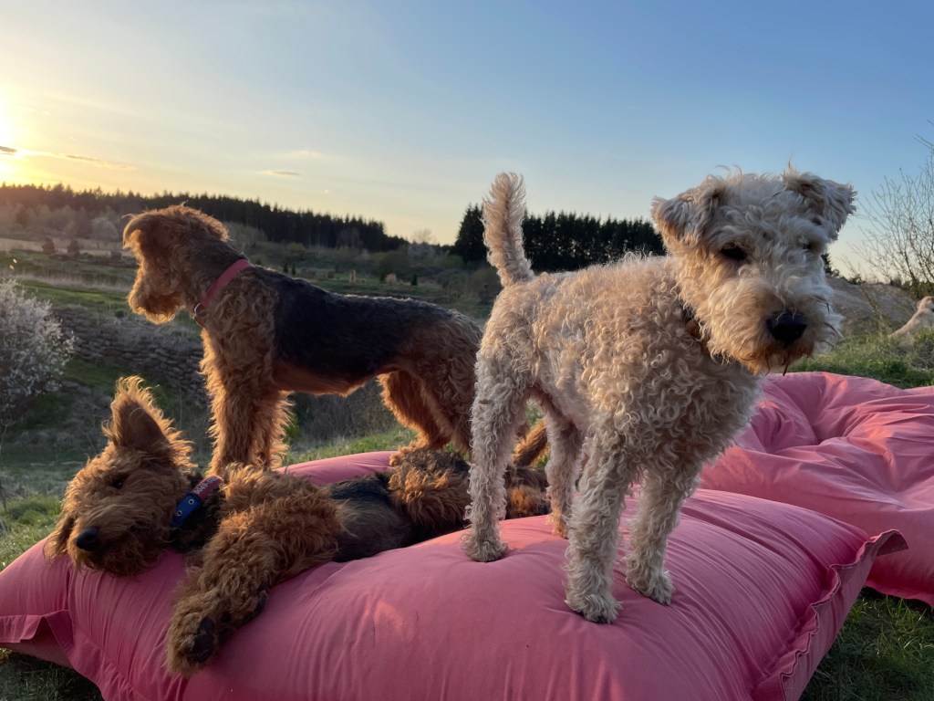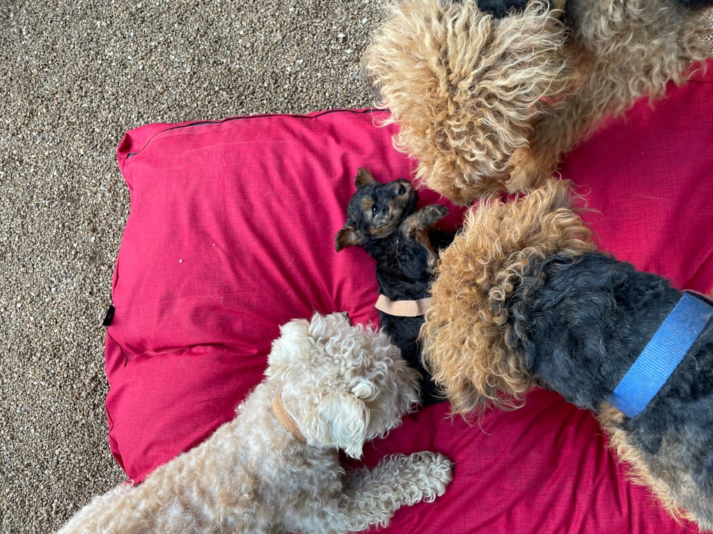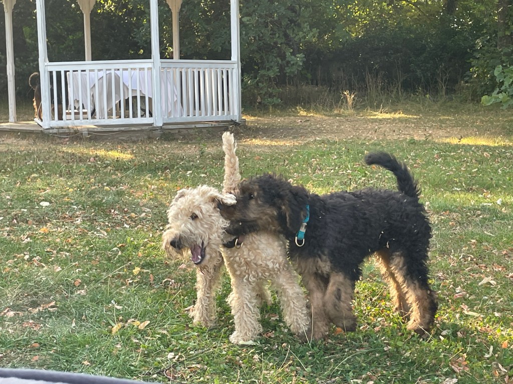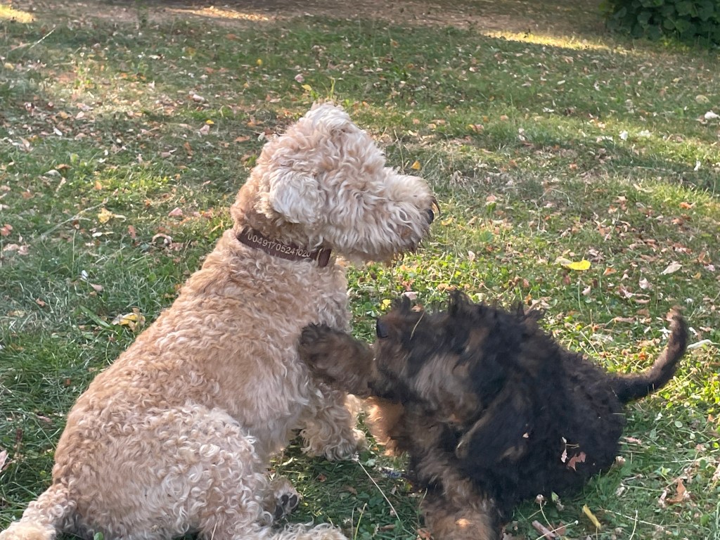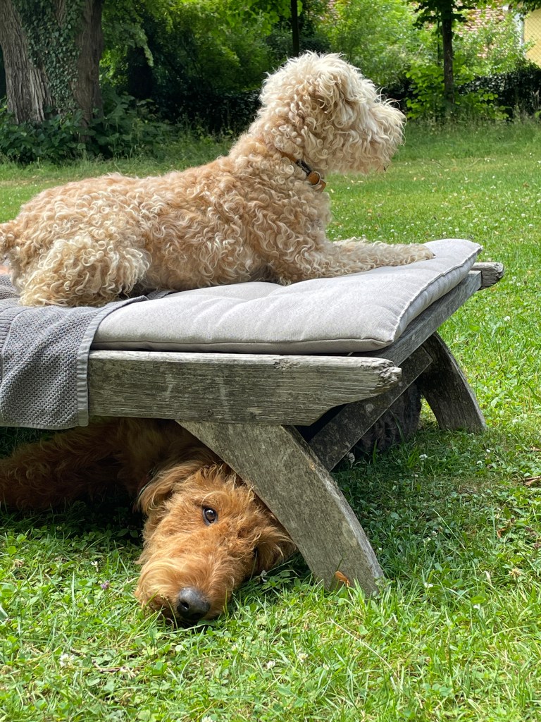Wir vermissen ihn sehr, obwohl die Airdales sich nun nicht mehr im Gebüsch verstecken müssen, weil er niemanden als erstes in den Garten ließ, er keine Vorhänge mehr anbieselt oder niemand mehr wütend bellt, wenn die Klingel läutet. Er war ein Unikum. Und er fehlt, es ist leise geworden in Dennenlohe.