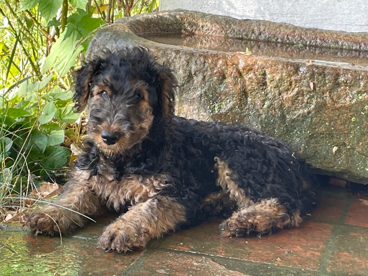 Nach 30 Jahren Airedales züchten, werden wir ja jetzt ganz ordentlich und sind dem KfT beigetreten, dem Klub für Terrier. Beide Hunde wurden bereits auf Hüftdysplasie und Ellenbogendysplasie geröntgt, die Augenuntersuchung und die Blutabnahme für die genetischen Untersuchungen und Phänotyp Beurteilung sind auch schon durch und wurden alle bestens bestanden, jetzt fehlen nur noch die beiden Ausstellungen im März und die Zuchtzulassungsprüfung – uff. Auch zwei potentielle Väter haben wir schon ausgesucht und jetzt hoffen wir, daß die beiden nicht vor der Zuchtzulassungsprüfung läufig werden, denn sonst geht mein ganzer schöner Plan für diesen Sommer nicht auf. Der Plan waren nämlich süße kleine wilde Schnuckelwelpen im Juni 🙂 – denn Fira ist schon fast 3 und erwachsen geworden.