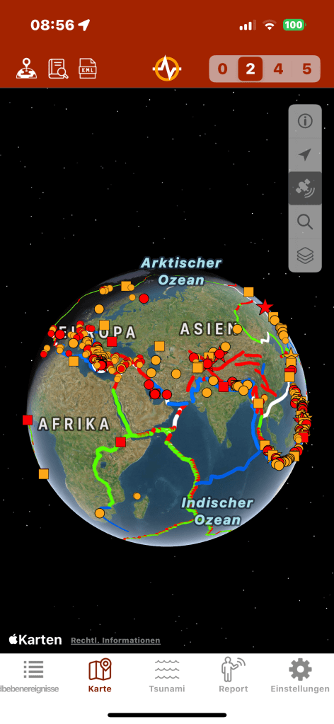 Wir sind also seit 2 Wochen mittendrin im Erdbebengeschehen und bei Beben über 4,5 spürt man ein minimales Schwanken des Hauses, wie bei einem leichte Wellengang auf dem Schiff. Ansonsten spürt man Nichts von den hunderten kleinen Beben der letzten Wochen und nachdem wir auf über 30m Höhe sind, muß man auch vor einem eventuellen Tsunami keine Angst haben. Es gibt eine tolle App „earthquake“, die einem immer zeitverzögert nach dem Beben anzeigt, wie stark es gerade war. Dann kann man vorher selbst raten, wie stark das Beben war. Unter 3 sind die Beben nicht spürbar, 3-4 merkt man ganz leicht, bei 4-5 wackelt alles ein bisschen, bei 5-6 können Holzhütten einstürzen, hier ist jedoch alles Erdbebensicher gebaut, daher passiert unter 7 in der Regel nichts.