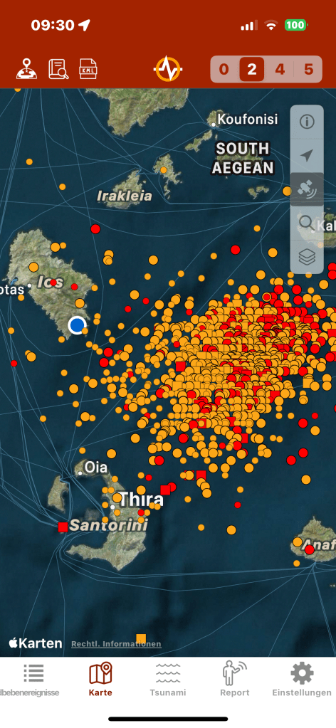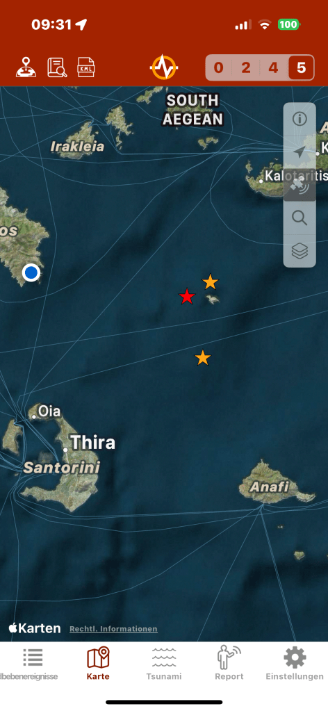 Samstag konnten wir das neue Auto holen und Sonntag ging es dann schon los, eine Woche zu spät, aber gerade noch rechtzeitig. Wie immer über Bari nach Igoumenitsa weiter nach Athen und dann nach Ios, unserer absoluten Trauminsel mitten in den Kykladen und gerade aktuell besonders im Gespräch wegen den Erdkrustenverschiebungen und dadurch verbundenen Erbeben auf der Nachbarinsel Santorin. Aber nicht nur dort, sondern auf der ganzen Welt rumort es aktuell zweigt die Erdbeben App…