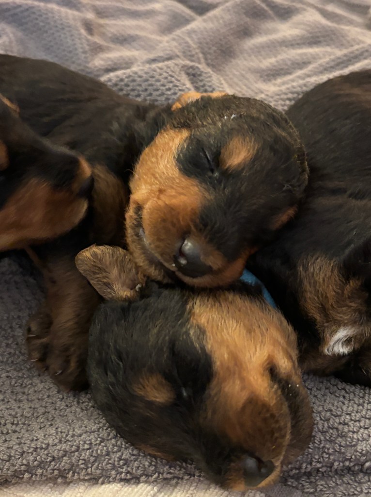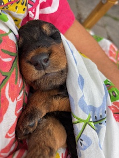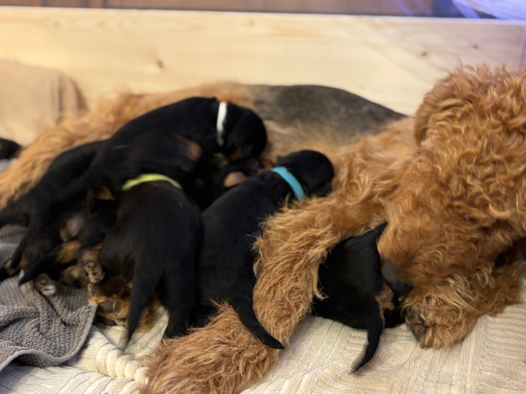 Zwei Airedaleterrierwelpen suchen übrigens noch neue tolle Zuhause ab Mitte September, alle anderen haben bereits neue Familien. Der nächste Wurf mit Yodine kommt im Mai 2026 🙂