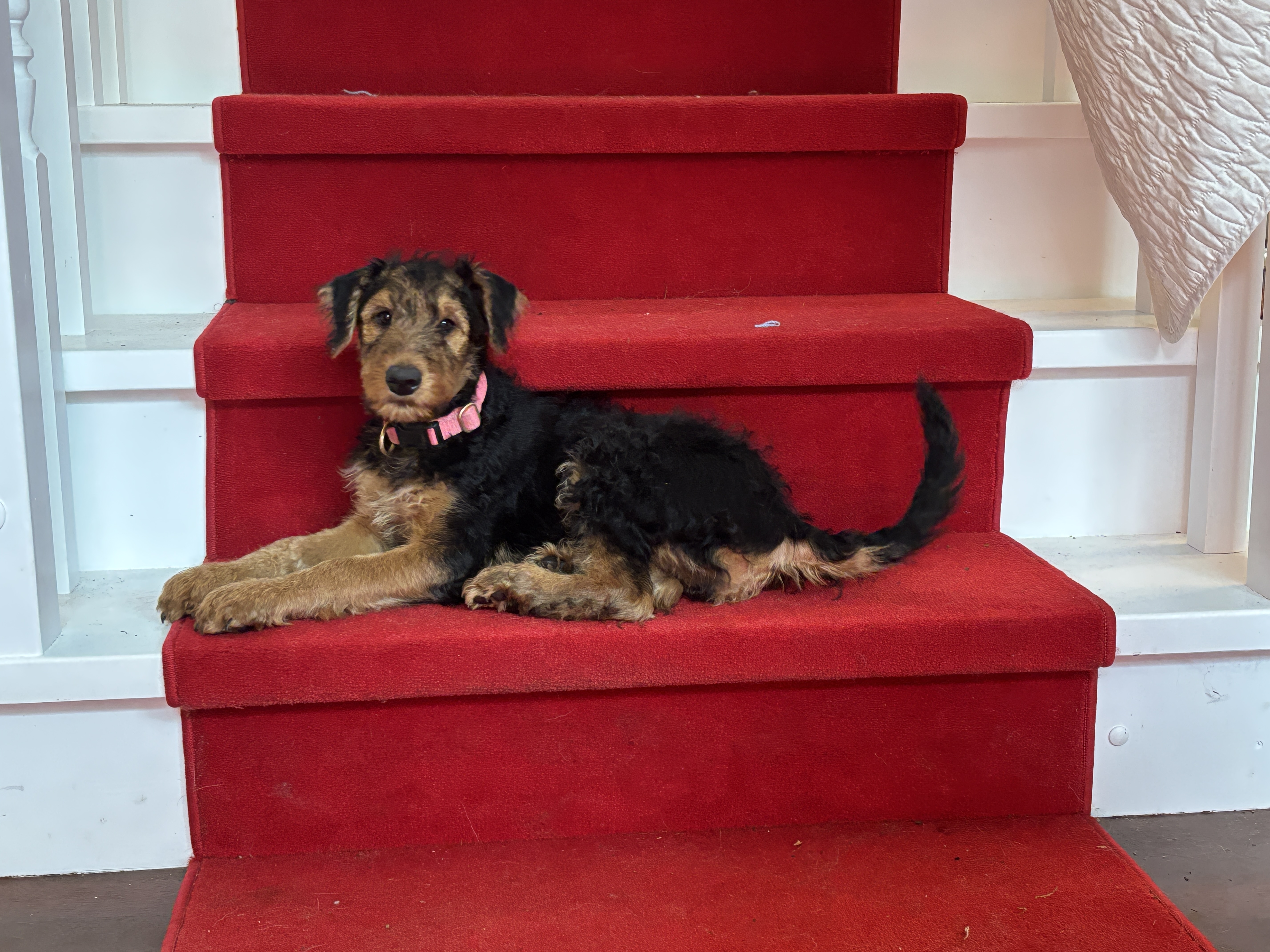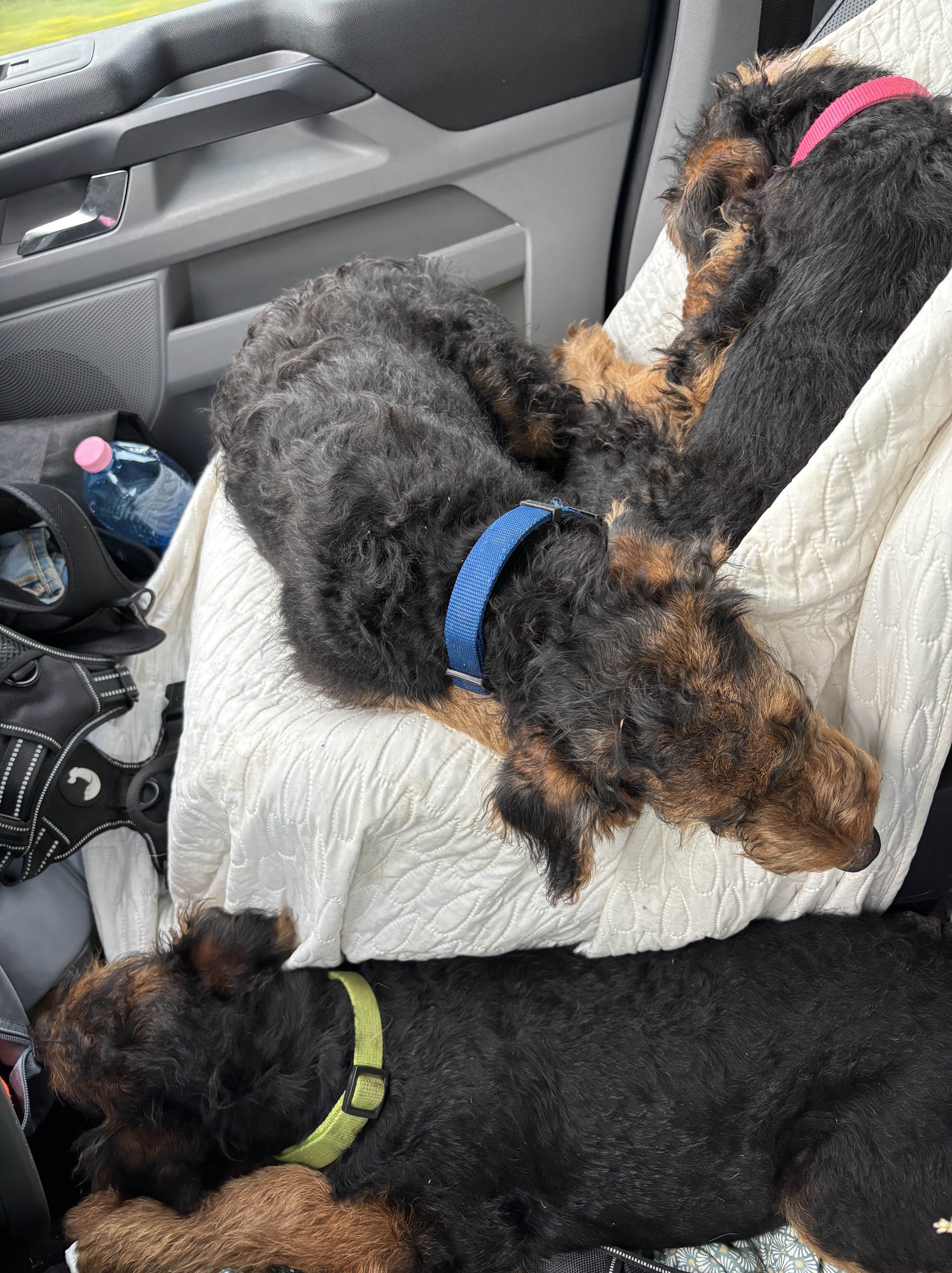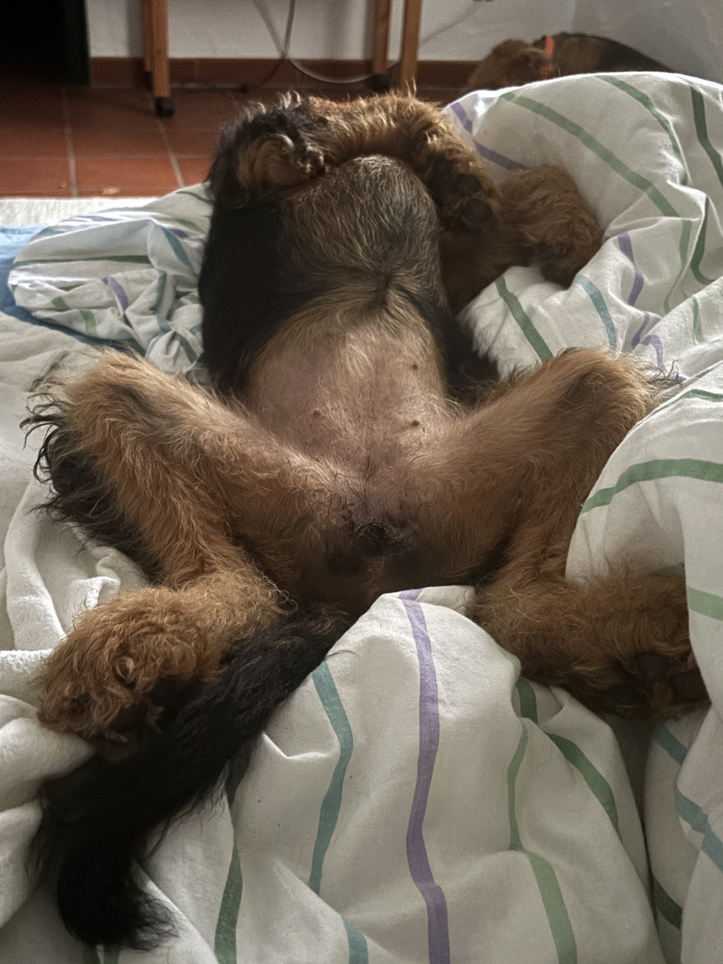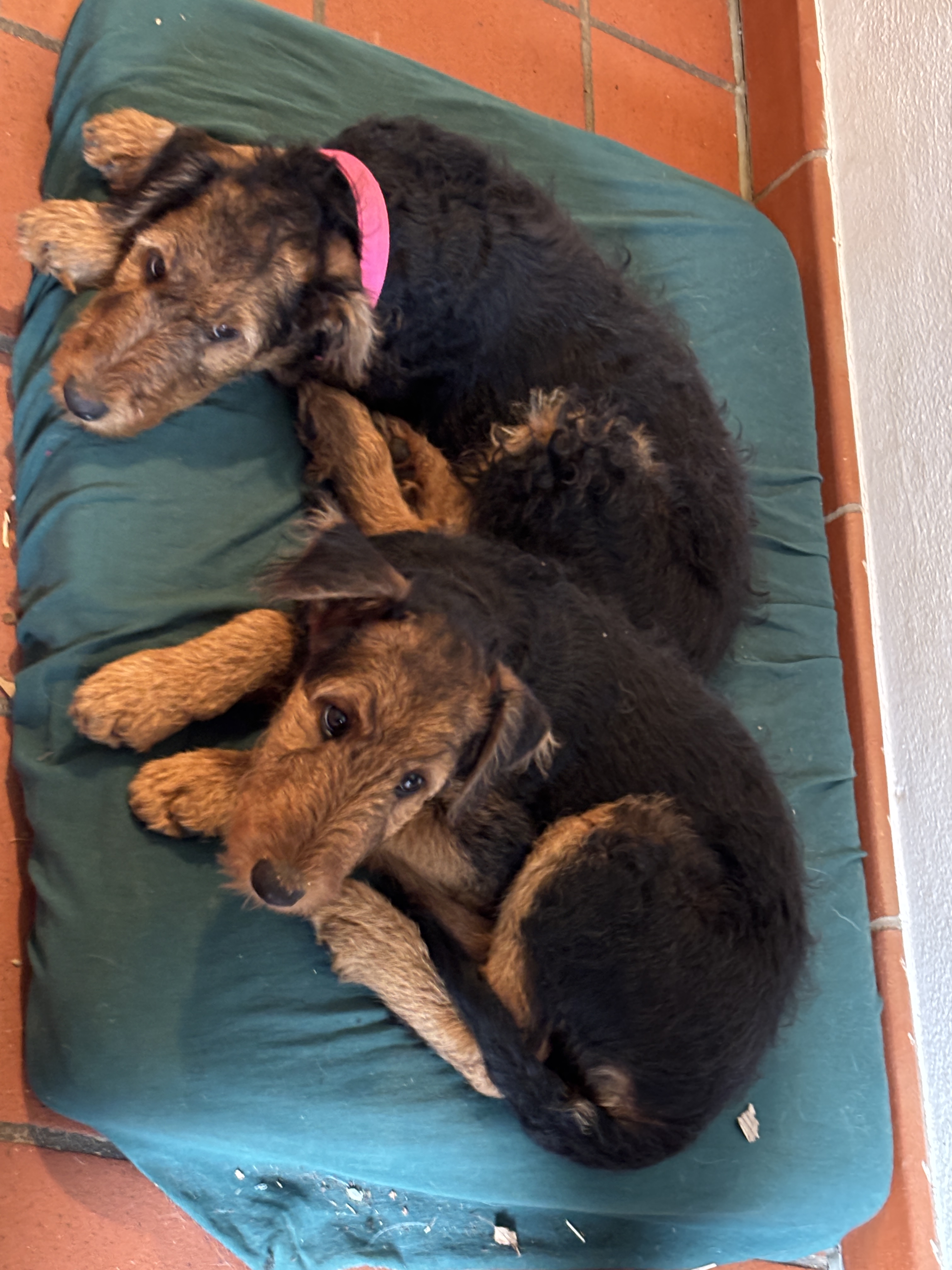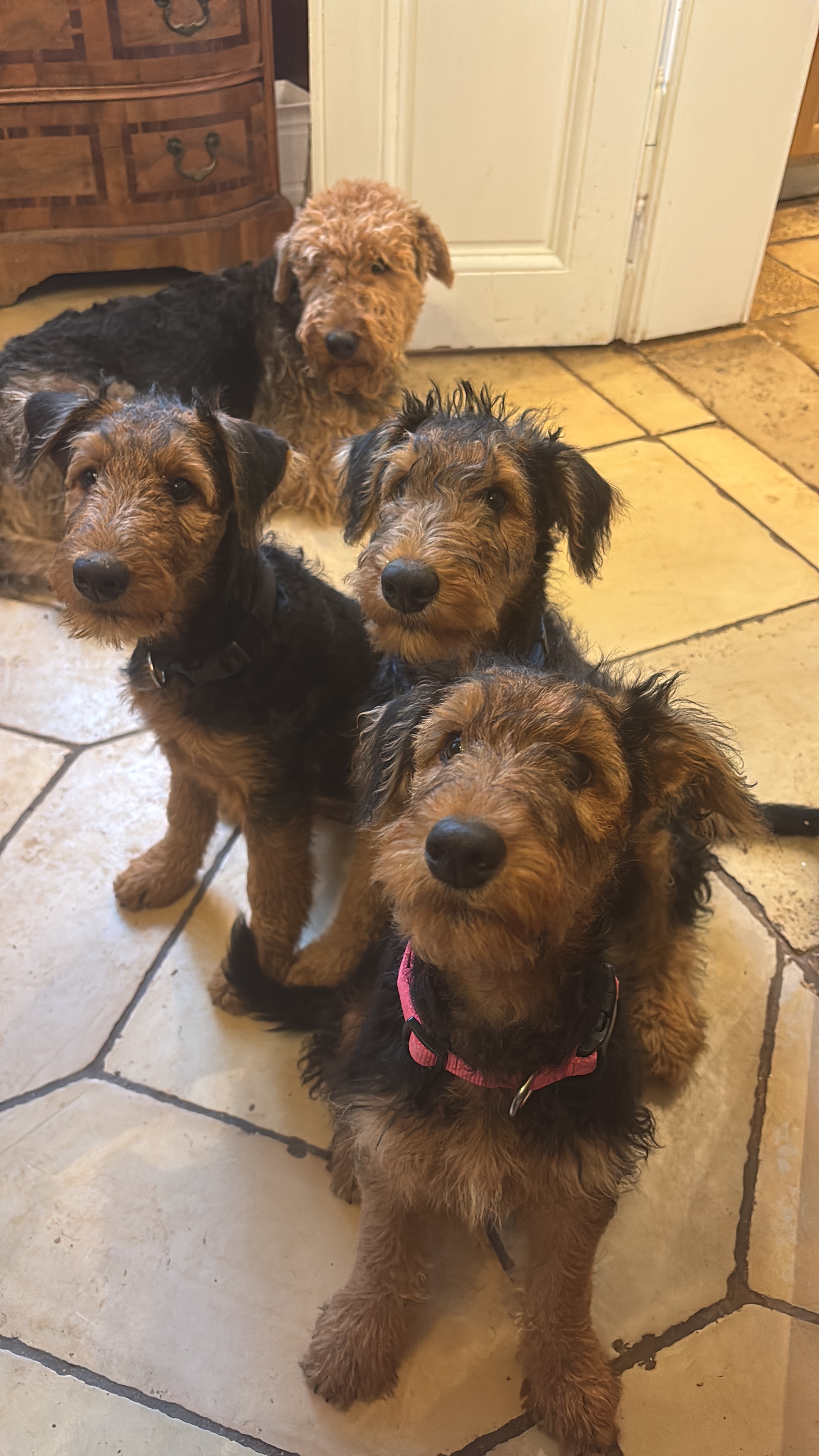 Extra für unsere letzten vier Welpen haben wir nach dem heutigen Welthundetag noch einen Hundespieltag am 12. Oktober aufgesetzt– das beliebte Highlight für alle Hundefans und Fellnasen! Die Kleinen müssen nämlich nochmal ganz viele fremde Hunde kennenlernen, bevor es dann nächste Woche weggeht. Bis auf ein Mädchen, das wir behalten sind dann alle Welpen sehr weit weg: Gatsby bringen wir nach Grasse in Südfrankreich, Dickie lebt fortan in Luxemburg und Pucki kommt an den Bodensee. Alle anderen Welpen sind bereits wohlbehalten in Erlangen, Beilngries, Stuttgart, Hannover und Bad Vilbel angekommen und in der WhatsApp-Gruppe „Lottes Welpen 2025“ gibt es jeden Tag neue Fotos und Filme über ihre Entwicklung zu sehen. Es ist wirklich traurig sich von den kleinen Rackern zu trennen, auch wenn man weiß, daß sie tolle neue Familien bekommen haben. Um meinen Schmerz zu lindern, darf Yodine hoffentlich nächsten März Mutter werden… Reservierungen gibt es schon!