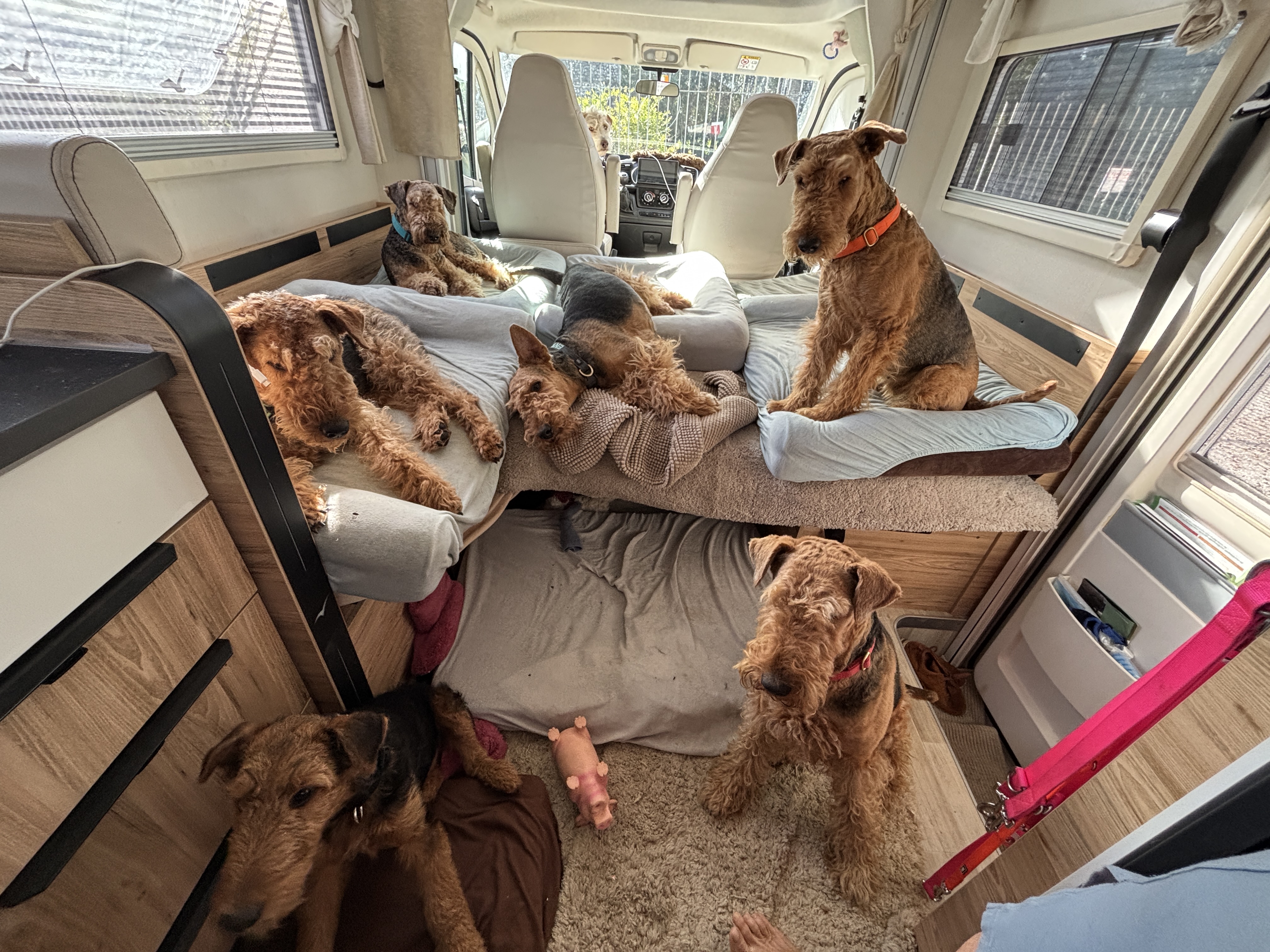 Zufälligerweise wollte der grüne Baron nämlich unbedingt auf den Spuren eines der Lyrikpreisträgerbücher des Deutschen Gartenbuchpreises 2025 nach Menton und dort Gärten an der Cote d´Azur ansehen. Also habe ich brav die Route nach Griechenland über Südfrankreich geplant und als ich so vor dem PC bei der Planung sitze, ruft mich eine sehr nette Welpeninteressentin aus Grasse an und wollte meinen letzte Rüden kaufen. Was für ein Zufall habe ich gedacht und nach einigen Telefonaten waren wir uns einig. So sind wir von Dennenlohe über Weilheim, wo Yodine ihre letzte Hundeausstellung mit „sehr gut“ absolvierte nach Grasse und haben Gatsby am Montag direkt in seinem neuen Zuhause abgeliefert, bevor es dann weiter über Italien und viele, viele Gärten nach Griechenland geht.