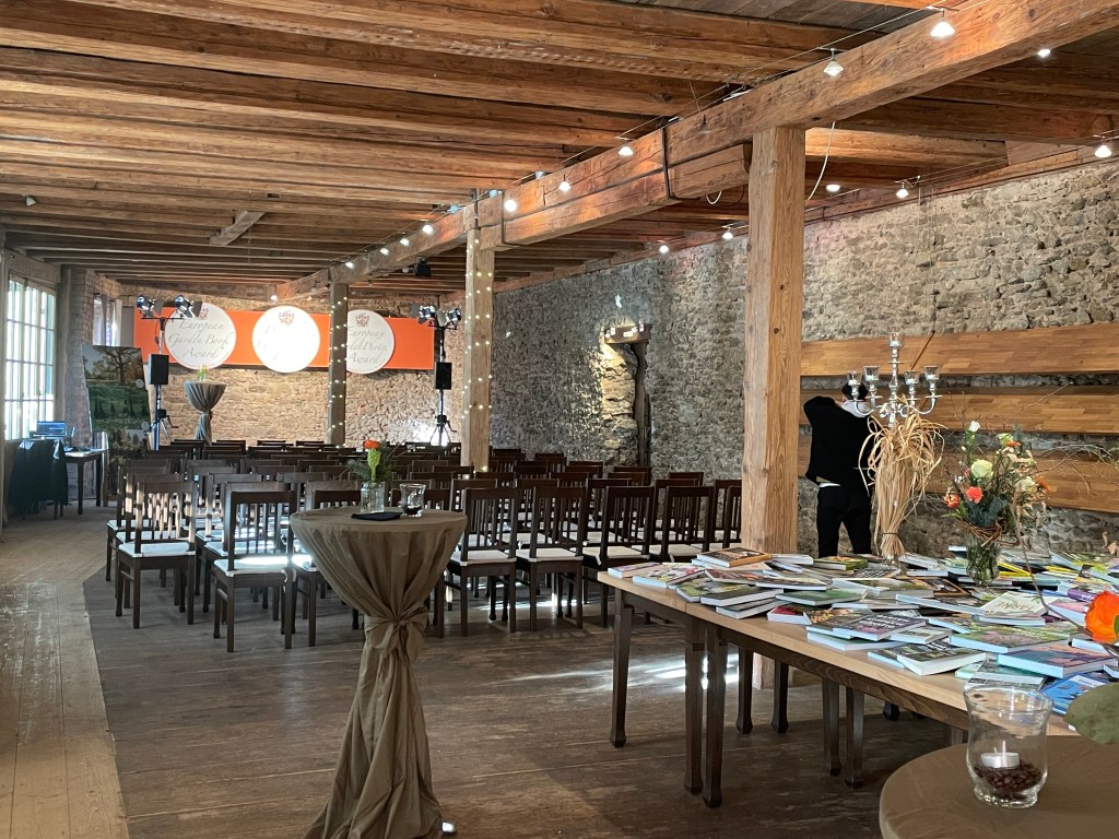 Vor 21 Jahren fand die erste Verleihung im Ess-Saal des Schloss statt – heute haben wir über 120 Gäste im Marstall des Schlosses und einen riesigen Büchertisch voller Einsendungen.